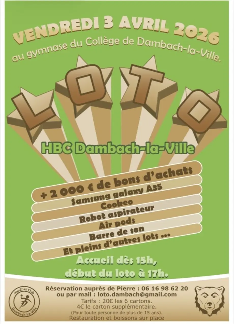 Le HBC dambach la ville vous propose son traditionnel loto le vendredi 3 Avril 2026.