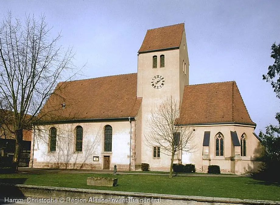 Un précédent lieu de culte est mentionné dès le XIème siècle. Depuis le Moyen Âge, l'édifice religieux est dédié à Saint-Urbain. Suite à l'introduction de la Réforme par Hans Kaspar von Rathsamhausen en 1576, l'église est affectée au culte protestant. Le simultaneum est introduit en 1687. La coexistence entre les catholiques et les protestants a duré jusqu'en 1892, date à laquelle une église catholique est construite.