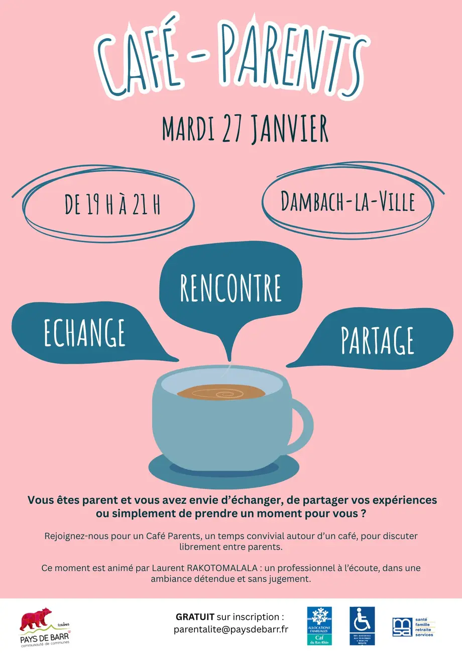 Rejoignez nous pour un café-parents, un moment convivial autour d’un café pour discuter librement entre parents, dans un cadre chaleureux et bienveillant.
