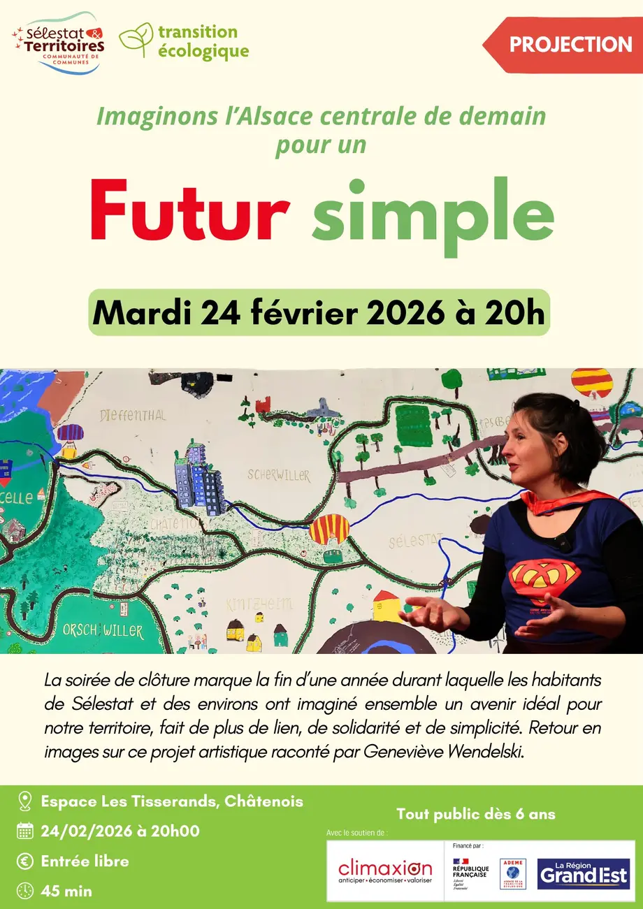La Communauté de Communes de Sélestat & Territoires vous invite à assister à la projection du reportage de Sébastien Buzov sur le projet culturel et participatif « Les Nouveaux Imaginaires de la Sobriété » qui explore les liens entre citoyens et transition écologique.