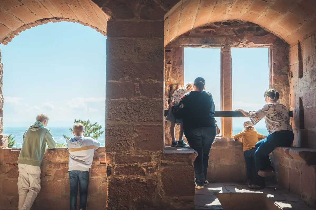 Parcours Pierres : au détour de 14 panneaux illustrés, replongez dans l’histoire du château à l’époque médiévale, tout en profitant d’une vue imprenable sur la plaine d’Alsace, la cathédrale de Strasbourg (selon météo) et la Forêt Noire !