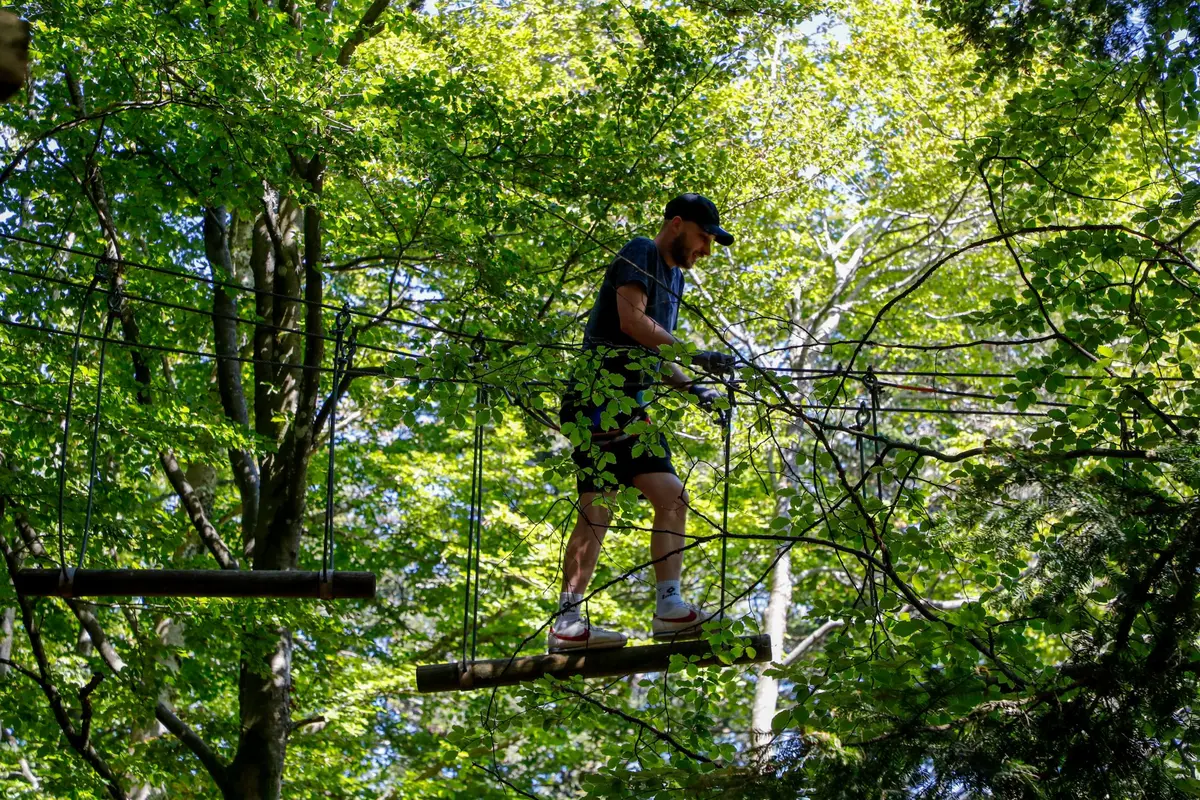 Les trois premiers parcours sont ouverts hiver comme été, les deux plus difficiles sont ouverts en été. Au programme : des ponts de singe, des tyroliennes, des lianes...