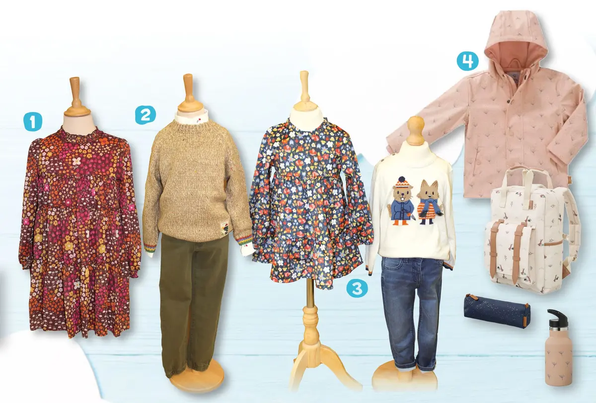 4. Les indispensables de la rentrée, avec un ciré pastel imprimé, un sac à dos, une trousse et une gourde en inox à emmener partout ! À découvrir chez Forty Winks à Mulhouse.