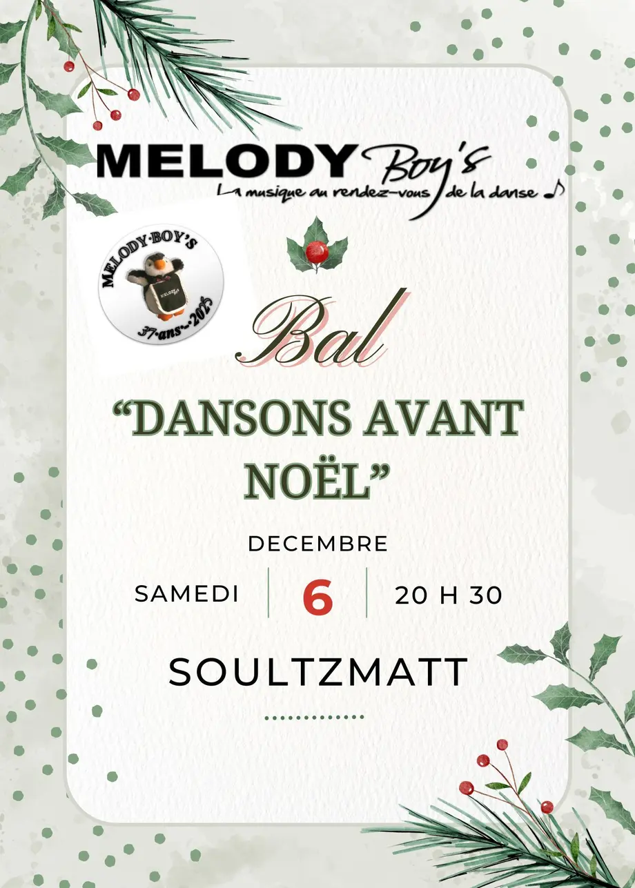 Afin de clôturer l’année en beauté, l'Orchestre Melody Boy's vous propose une dernière soirée dansante intitulée « Dansons avant Noël » :