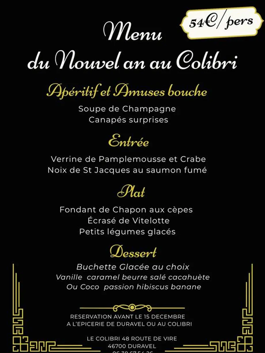 Menu du Nouvel An au Colibri