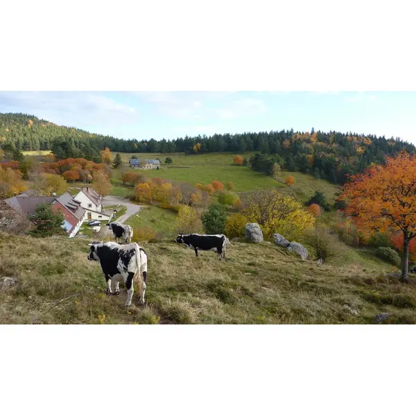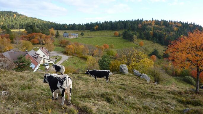 Vue sur la ferme auberge du Glasborn et ses vaches laitières