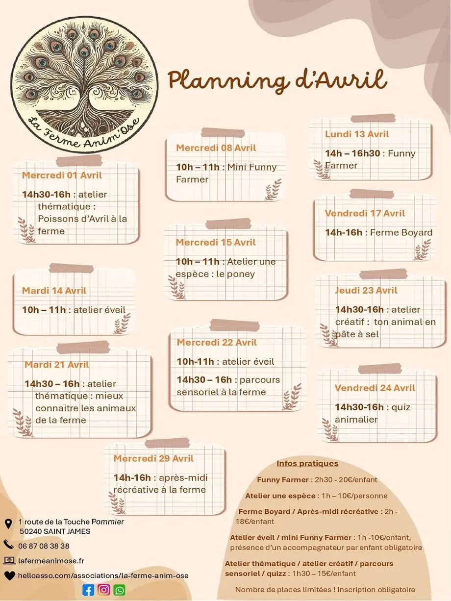 - du Mercredi 1 Avril 2026 au Mercredi 29 Avril 2026 de 9h30 à 17h