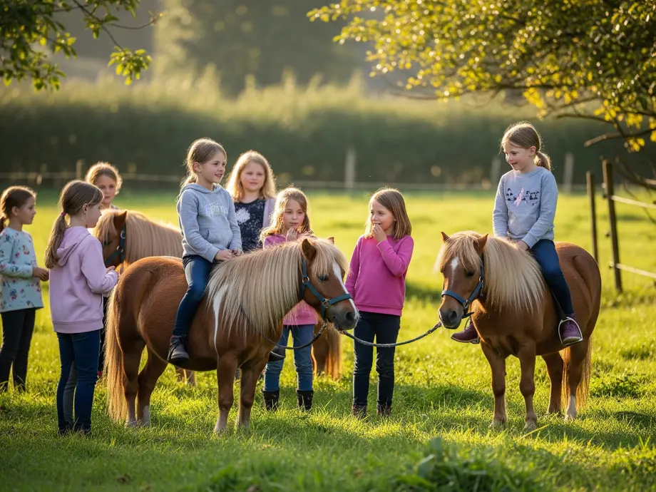 Au cours de cet après-midi, les enfants de 4 à 16 ans découvriront les poneys et leur univers : participation à la préparation des poneys, balade, découverte de leurs habitudes et de leur alimentation, etc.