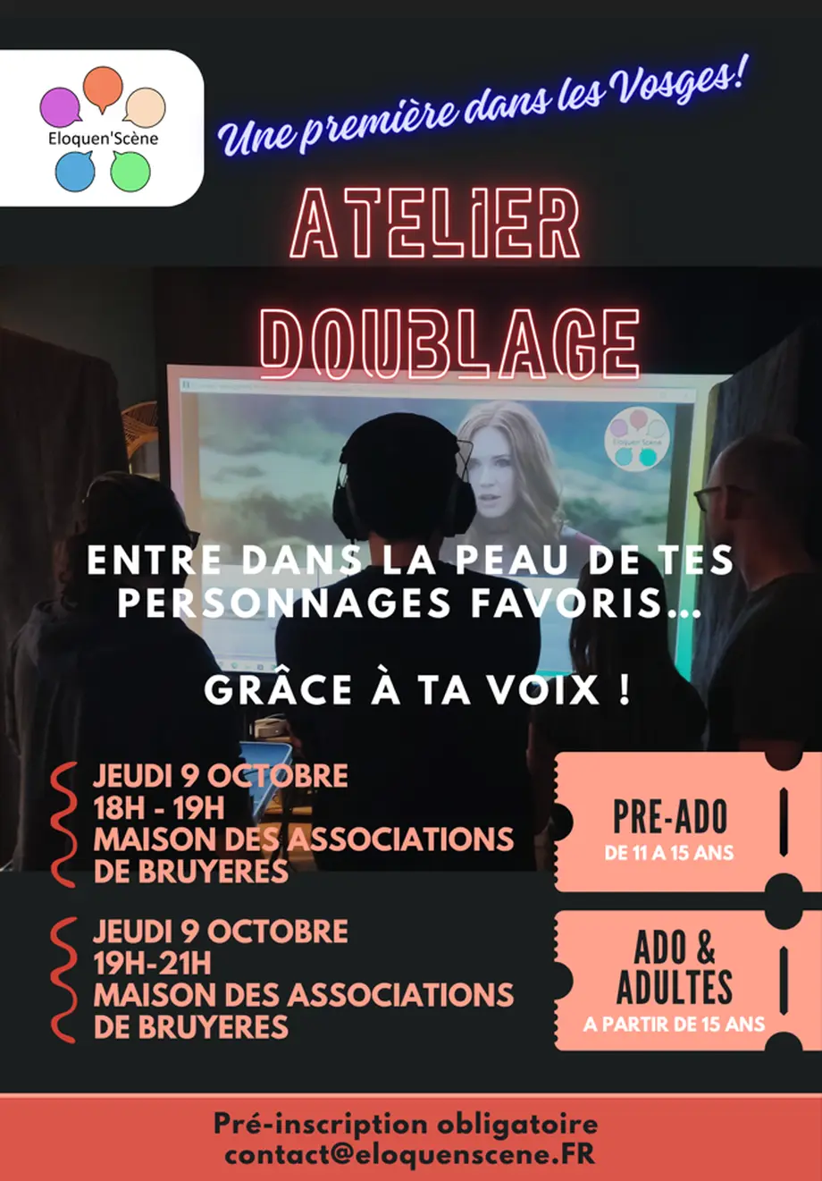 Au programme : l’objectif de ces ateliers est de vous initier aux techniques du métier du doublage :