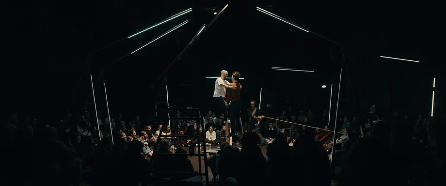Réfugions-nous est un spectacle pas comme les autres. Ici, vous êtes sur scène avec les artistes. Vous participez, vous bougez, vous choisissez. Vous créez, avec eux, un lieu unique. Des bouts de bois deviennent peu à peu une cabane, un abri, un espace à partager. Chacun·e agit à sa façon. On s’assoit, on déplace, on observe, on ose... Et tout change en fonction de vous.
