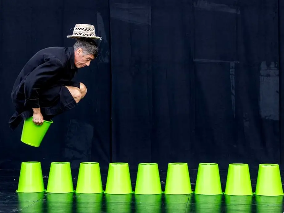Dans ce spectacle muet, Bakéké, personnage audacieux, vêtu d’une blouse noire et d’un chapeau de paille, s’acharne à ériger des constructions géométriques à l’aide de simples seaux. Rêveur et obstiné, il poursuit une perfection insaisissable, au risque de sombrer dans l’absurde. Bakéké (qui signifie « seau » en langue hawaïenne) choisit de transformer ses défaites en terrain de jeu.