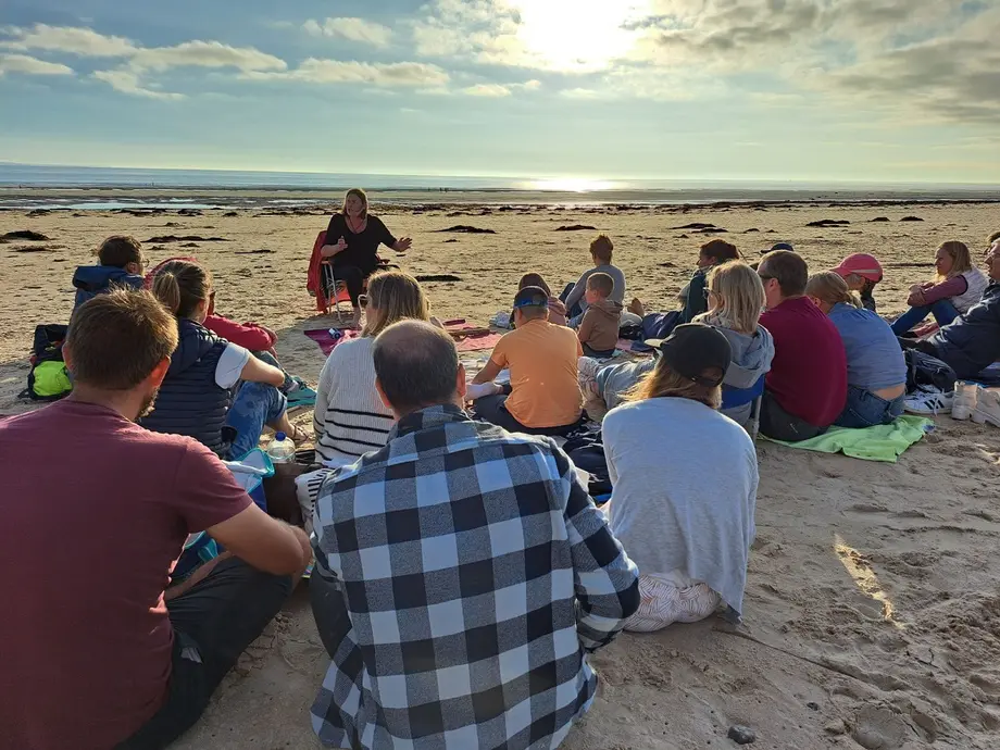 En soirée, face à la mer et assis sur le sable de la plage de Ravenoville, laissez vagabonder votre esprit au rythme des contes lus par Krystin. Profitez d'une vue sur la mer au crépuscule et découvrez les histoires et légendes locales.