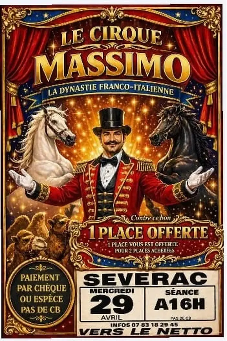 Venez découvrir le Cirque Massimo à Sévérac-d'Aveyron. Au programme : des jongleurs, des acrobates, des clowns, des équilibristes et bien d'autres. C'est aussi l'occasion de voir des chevaux, des lamas et des ânes.