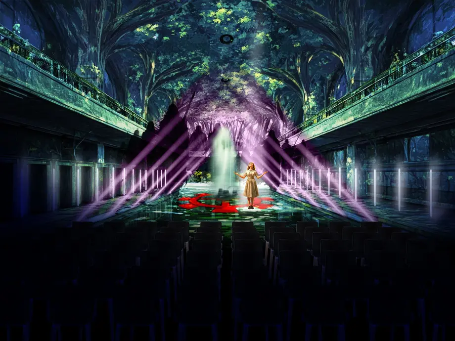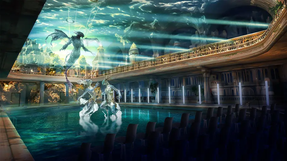 "Imaginez des cascades virtuelles déversant leur flot depuis les voûtes de l'édifice, ricochant en contrebas sur un miroir d'eau bien réel, des chorégraphies aériennes de dragon ou de fée extravagante, un percussionniste à la rythmique envoûtante, des apparitions holographiques, des jets d'eau : le concept de spectacle immersif total prend ici tout son sens."