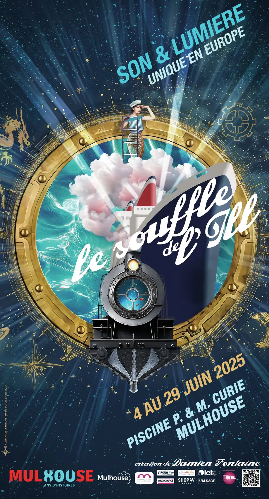 Le choix de la Piscine Pierre et Marie Curie comme cadre pour ce spectacle son & lumière à Mulhouse n'est pas anodin. Ce lieu historique de Mulhouse, fermé au public depuis 3 ans, sera transformé pour l'occasion, offrant une scénographie unique où l'eau, élément central de la piscine, dialoguera avec les effets visuels et sonores.