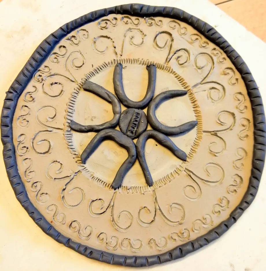 Une assiette, un verre, un pichet : l'exposition permanente de l'association est riche en vaisselle de la vie quotidienne, de l'époque gallo-romaine au Moyen Âge. Après avoir observé les motifs qui décorent tous ces objets, on imagine un décor sur une véritable assiette en argile à modeler : d'abord sur du papier, puis avec un outil pointu sur l'argile.