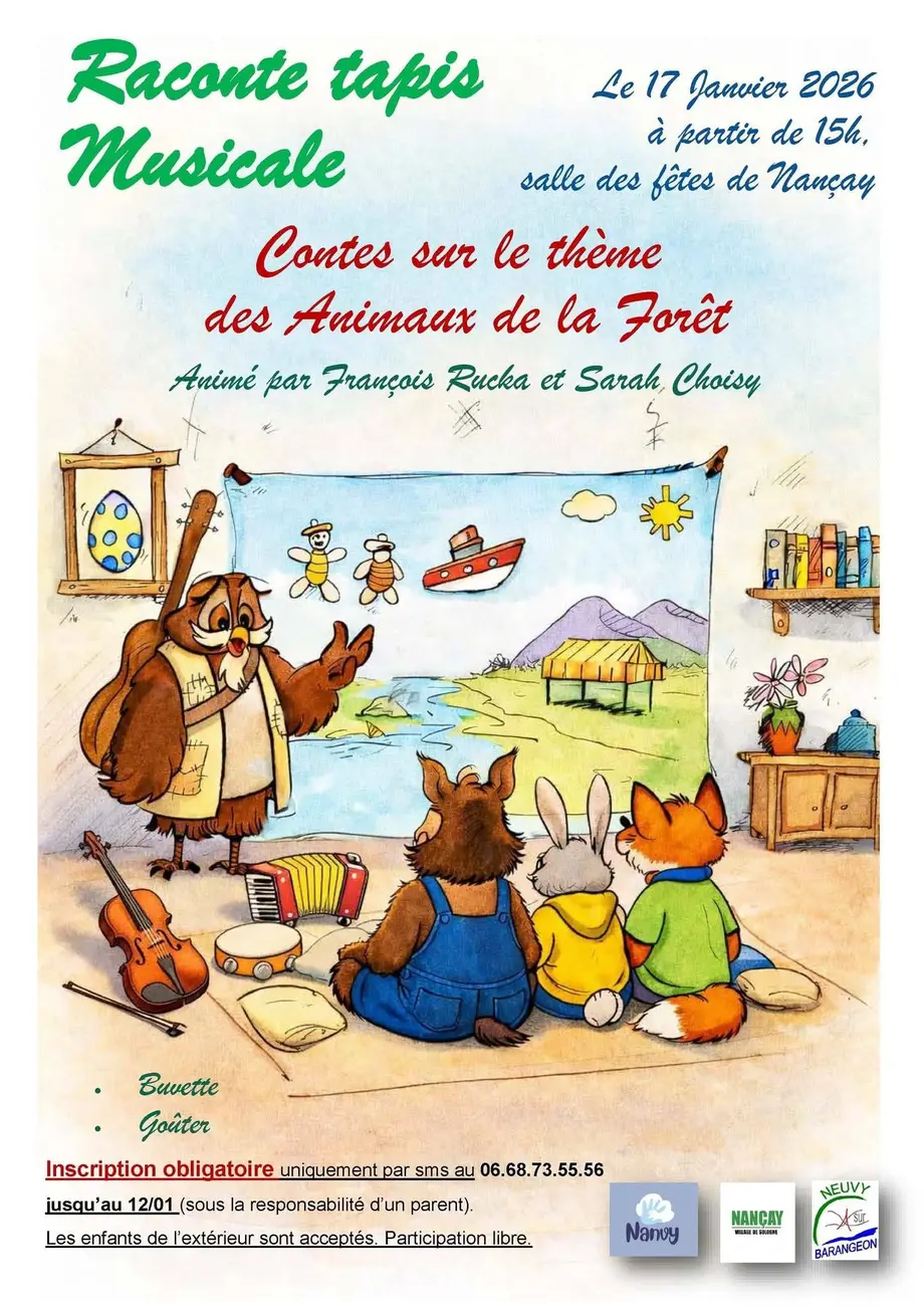 La salle des fêtes de Nançay vous ouvre ses portes le samedi 17 janvier 2026 dès 15 h pour un raconte-tapis musical plein de douceur et de poésie.