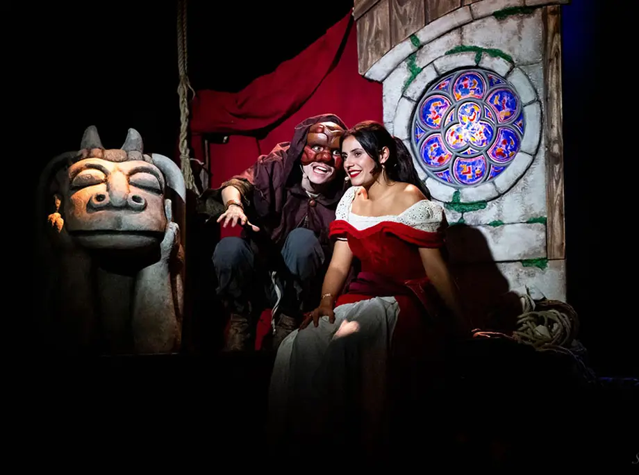 Esmeralda, Quasimodo, Gringoire, Phoebus et Frollo vous entraînent dans une histoire pleine de rebondissements, d’action, de chansons et d’humour. Un spectacle à découvrir en famille.
