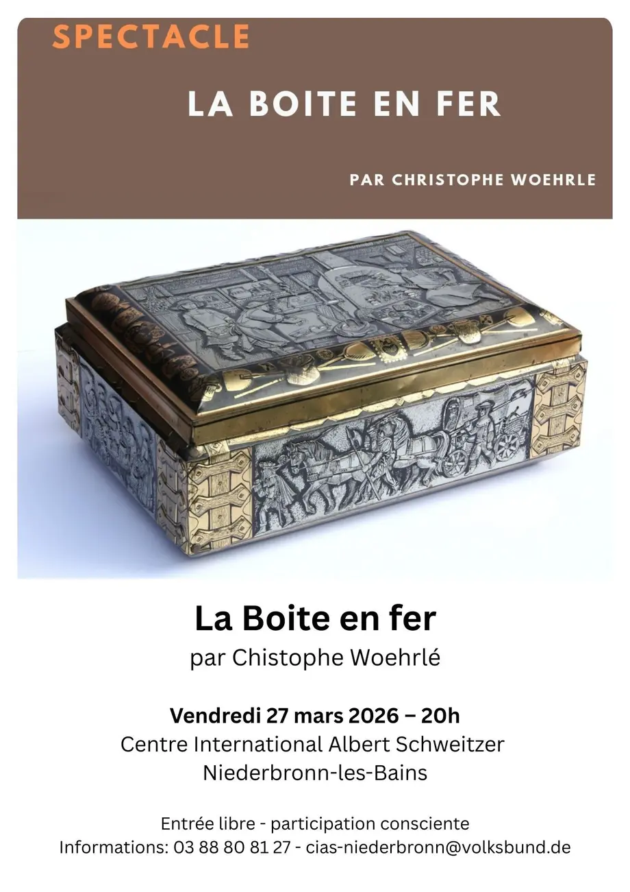 Entre conférence et théâtre, suivez les aventures d'un Alsacien né en 1894 dans un petit village de la région. Découvrez les traditions d'un homme balloté entre deux cultures, aux frontières des Vosges et de la Forêt-Noire. Suivez ses péripéties à travers l'Europe, traversant les guerres et les grands évènements, tout en découvrant l'Histoire, avec un grand H. Au fond d'une boite en fer conservée par la famille, se trouvent les traces d'un passé encore bien présent et l'auteur confronte ses souvenirs avec les documents, les faits.