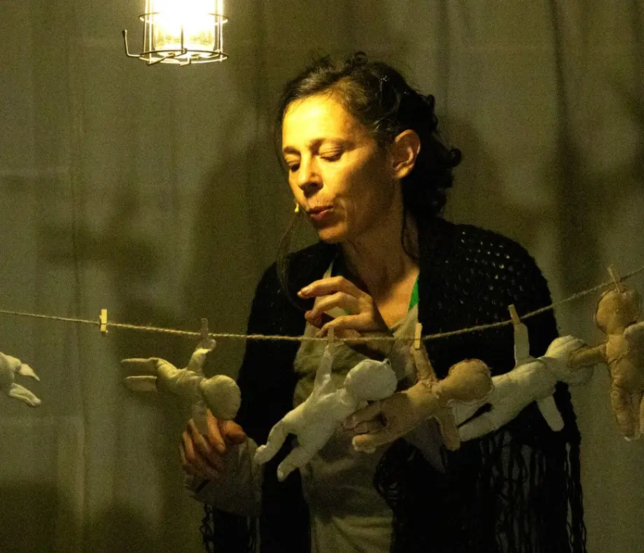 Cyrille se raconte, Henriette s’incarne. Au-delà de la mort et de l’oubli, la parole et les images surgissent. Troublées et troublantes. Quarante-six ans d’internement en asile se déroulent dans un théâtre de poupées et de chiffons éclairé en demi-teinte par des lampes de poche. Dans une langue à vif, une langue inventée – langue d’enfant et de poète –, la vie d’Henriette surgit : son quotidien terrible et sa force immense d’avoir été debout et vivante dans sa prison, et le monde qu’elle a façonné pour ne pas chuter – fait d’imaginaire et de dérision.