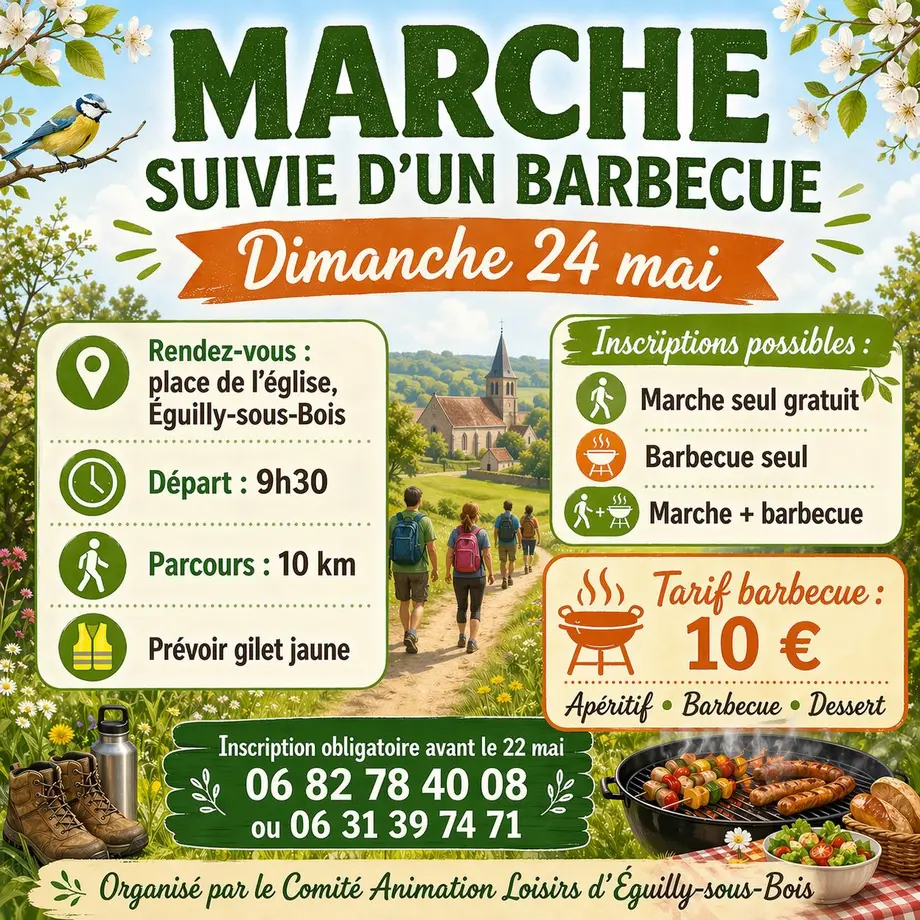 Randonnée pédestreLe 10/05/2026Saint-Benoist-sur-VanneDimanche 10 mai : Saint-Benoist-sur-Vanne - Randonnée pédestre. À partir de 9 h à la salle des fêtes.