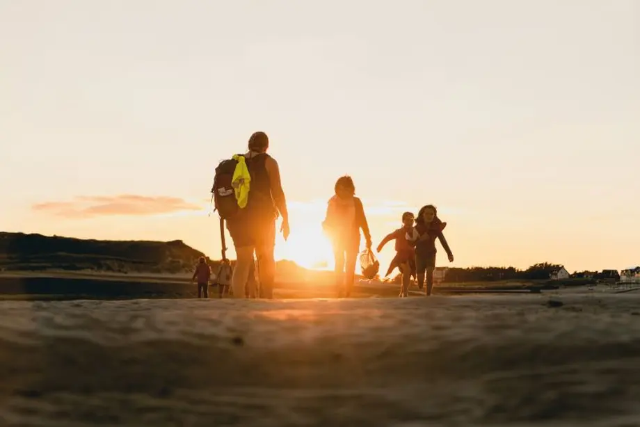 - Au pied des dunes : nettoyage des pieds et remise des chaussures, coucher de soleil