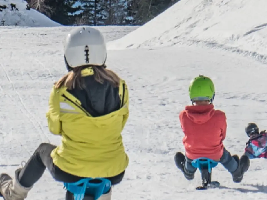 Descente des pistes de ski de Val Cenis : en position assise, dirigez-vous avec vos pieds et découvrez des sensations magiques.