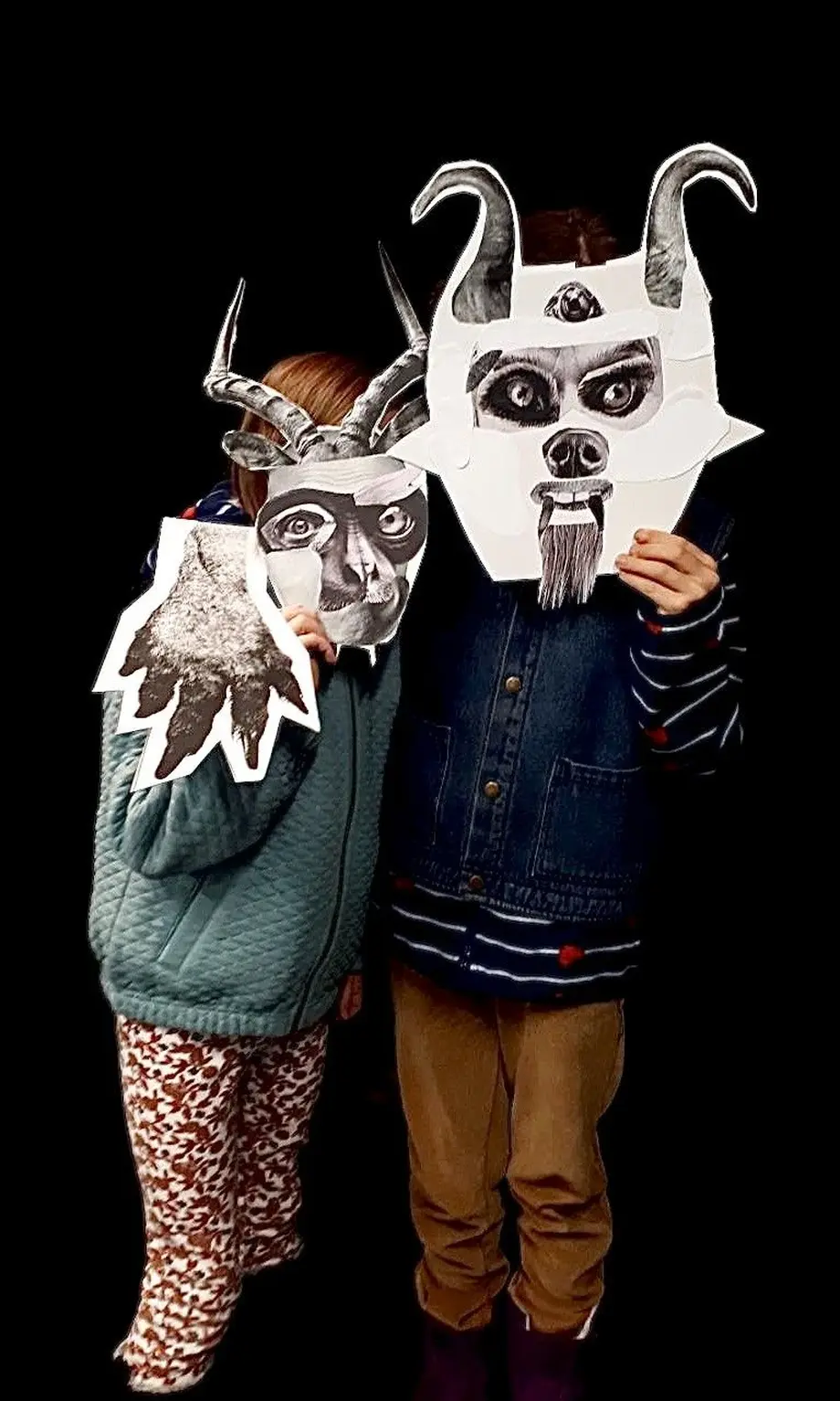 « À partir de formes abstraites colorées et prédécoupées par l’artiste intervenante, les participants organiseront les formes à leur convenance pour fabriquer un masque de créature fantastique unique !