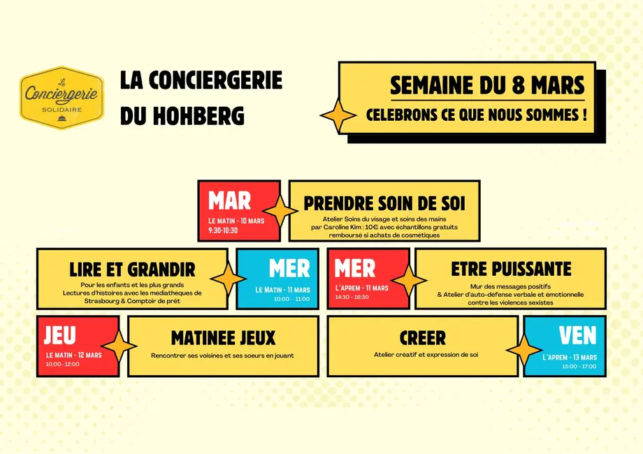 Dès mardi, la Conciergerie du Hohberg vous propose toute une semaine d'animations centrées autour du 8 mars et des femmes, pour célébrer tout ce que nous sommes !