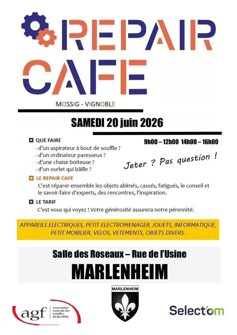 L’AGF organise régulièrement un Repair Café dans l’un des villages de la Communauté de Communes Mossig et Vignoble. Prochain rendez-vous : le 26 septembre 2026 à Wasselonne.