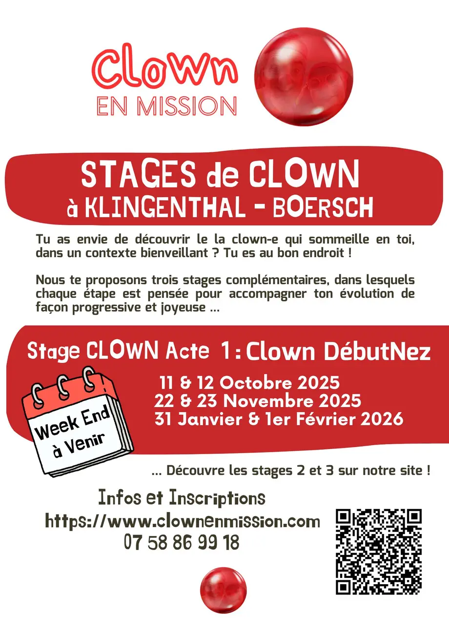 Contrairement à l’idée de « faire le clown », il s’agit ici de laisser émerger une part authentique de soi, dans un espace de liberté, de jeu et de création. C’est une exploration joyeuse, parfois touchante, toujours surprenante.