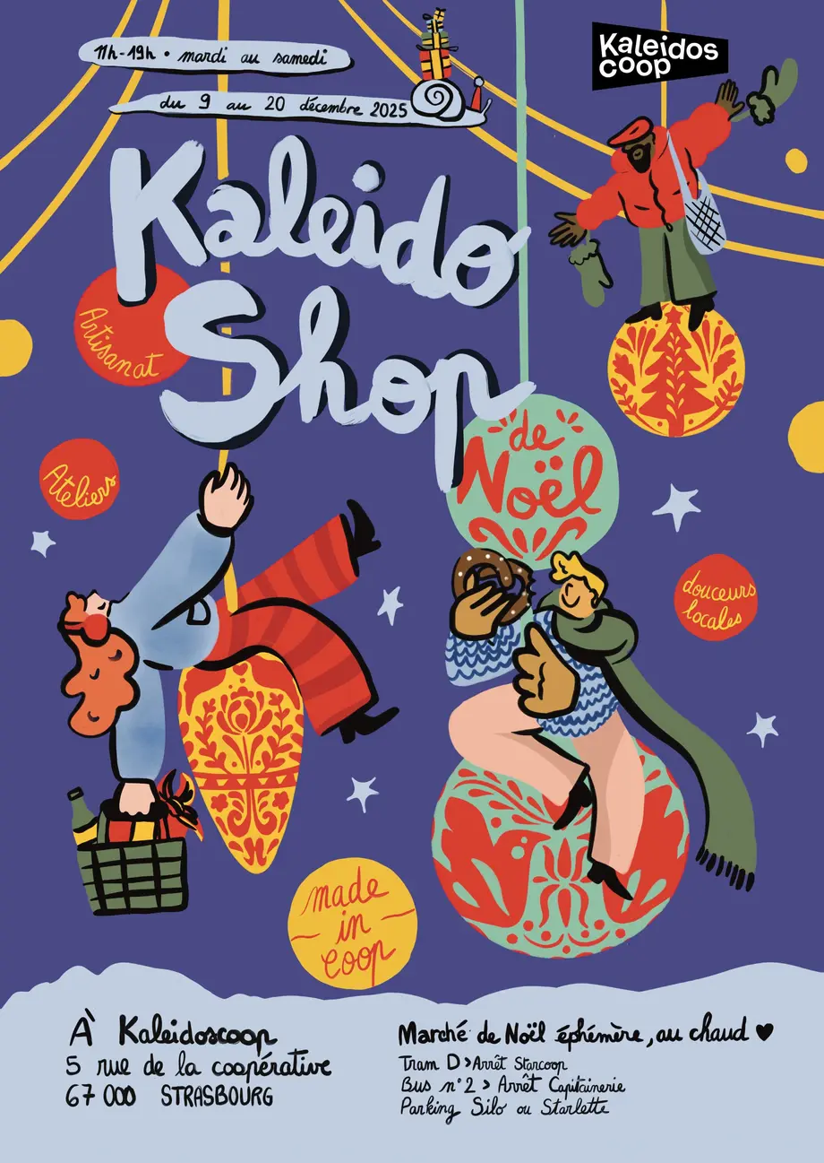 Pour l’édition de Noël, du 9 au 20 décembre, une quinzaine de stands seront présents. Un grand corner “Made in Coop”, animé par les acteurs du quartier (Ateliers Éclairés, Garage Coop, BCDM), vous accueillera au coeur du marché. Pour le reste, on garde un peu de mystère : créateur·rices locaux, traiteurs et douceurs artisanales, mini marché solidaire, bières et vins bio et locaux, vêtements responsables fabriqués en France, tatouage responsable et inclusif, projets venus des incubateurs strasbourgeois, atelier de réparation de vélo… et quelques surprises encore…