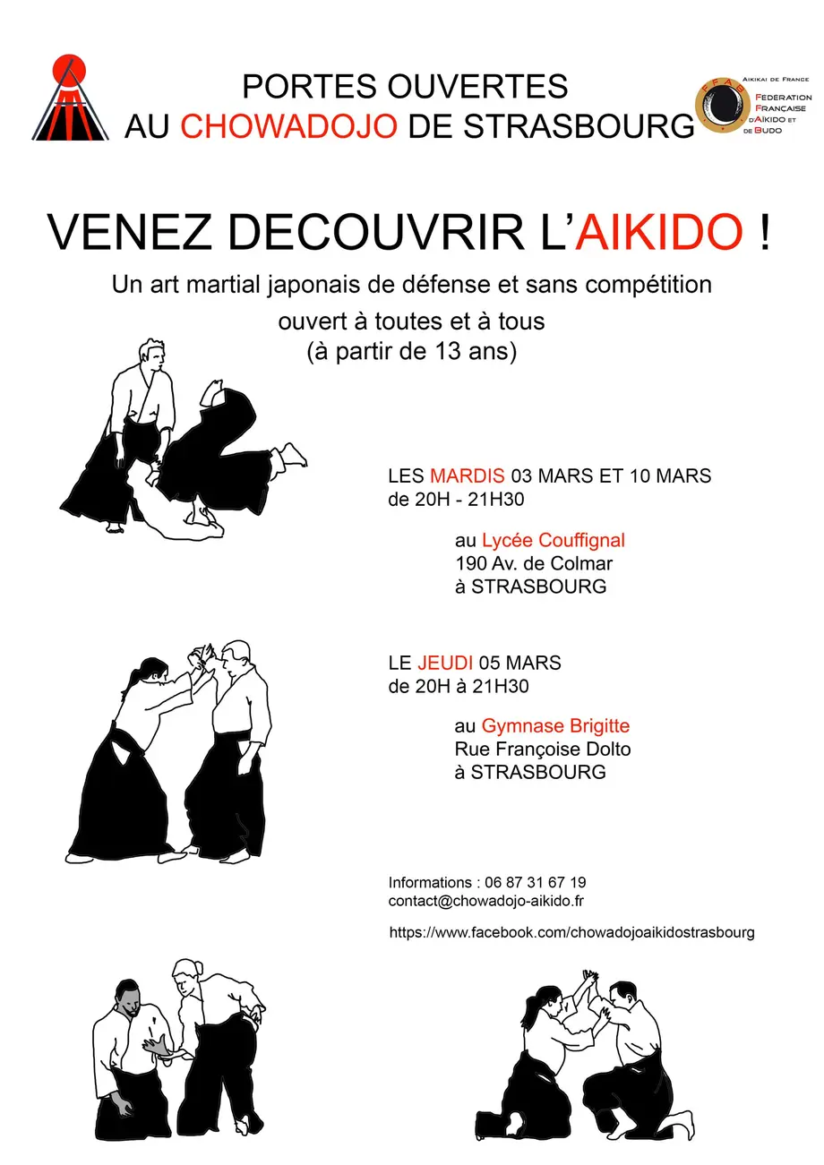 N'hésitez pas à nous contacter pour plus d'informations par e-mail : contact@chowadojo-aikido.fr ou par téléphone au 06 87 31 67 19