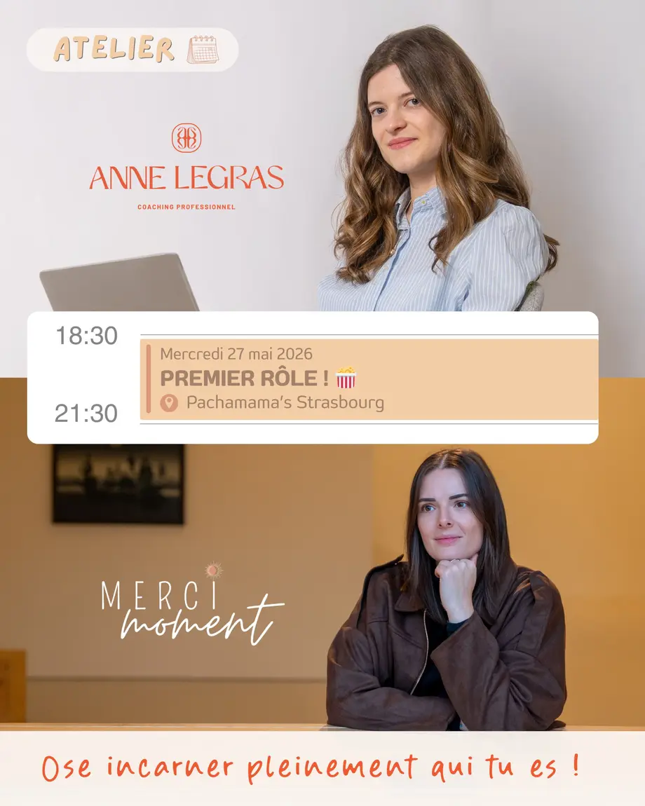 Un moment pour toi, accompagné par Mélanie - hypnothérapeute (fondatrice de Merci Moment) et Anne - coach professionnelle certifiée, dans un cadre de confiance qui invite à l’exploration et aux échanges, pour t’autoriser à (re)prendre pleinement ta place.