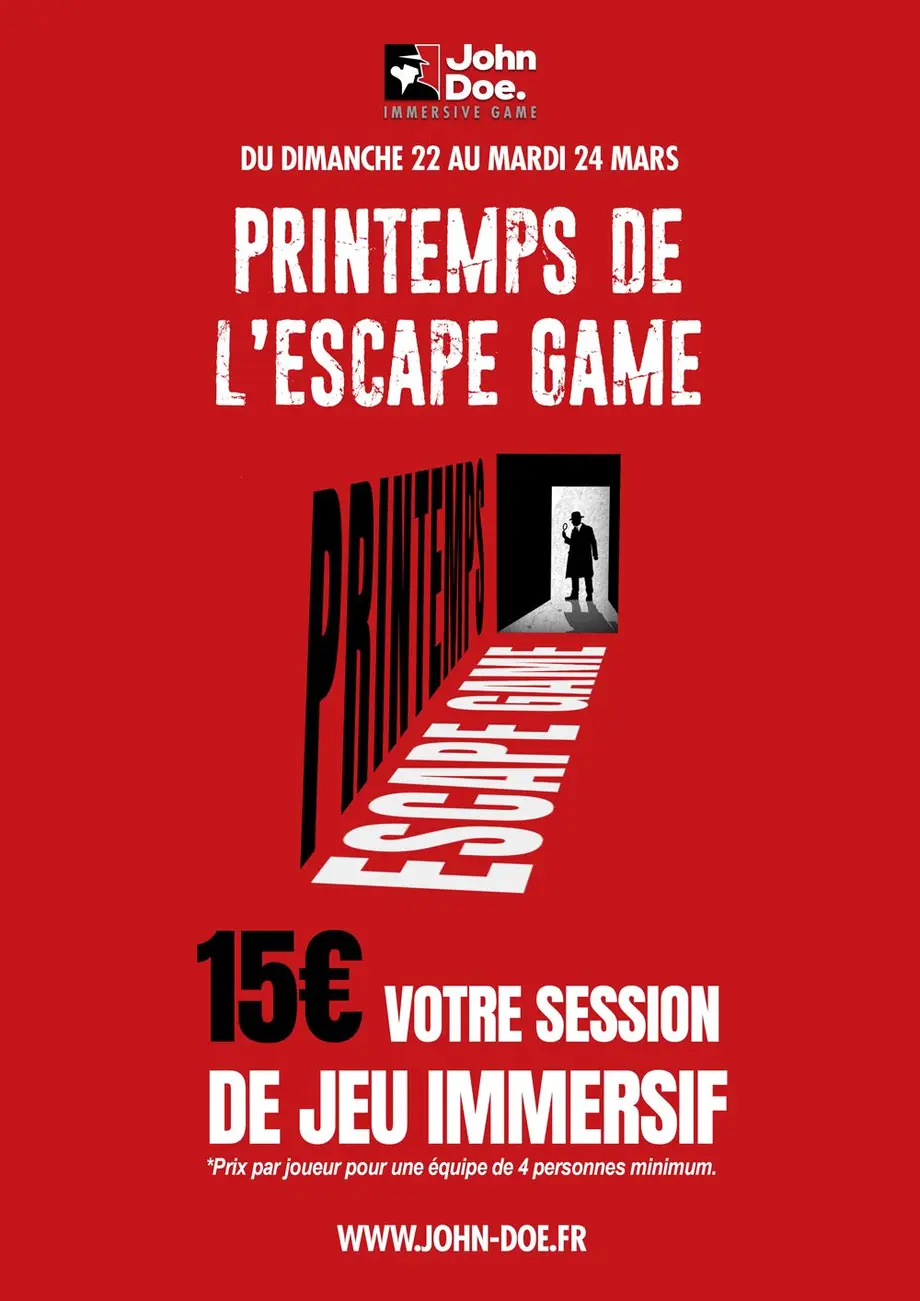 Du 22 au 24 mars, profitez d’un tarif unique de 15€ par personne pour une session d’escape game.