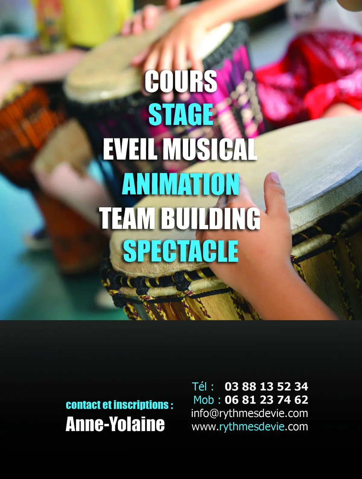Ateliers d'éveil musical en crèche, cours, stage, animation, team building, fête d'anniversaire...