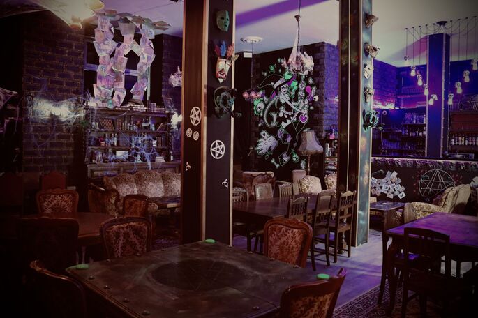 Oubliez Salem, le nouveau lieu de rendez-vous des initiés à la magie noire se situe bien au 12 rue des magasins à présent. Entrez dans ce bar teinté d’étrange et de surprenant, avec une pointe d’angoissant. Invoquez un serveur de l’au-delà à l’aide de notre planche de ouija, convoquez votre coven autour d’une table d’abbaye pour parler de vos prochains sortilèges, buvez potions et maléfices, divertissez-vous autour de flippers et de machines à coups de poing.