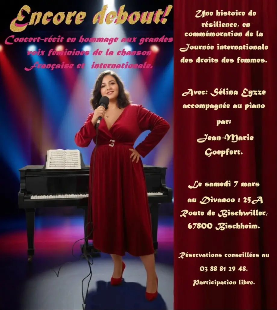 À l’occasion de la Journée internationale des droits des femmes, je vous invite à Encore debout ! Un concert-récit intime et engagé. Ça se passe le samedi 7 mars à 20h au Divanoo : 25A Route de Bischwiller, 67800 Bischheim. Avec une participation libre.