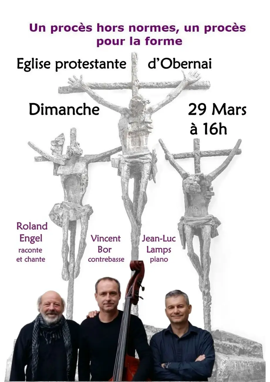 Roland Engel raconte et chante, accompagné au piano par Jean-Luc Lamps et à la contrebasse par Vincent Bor.