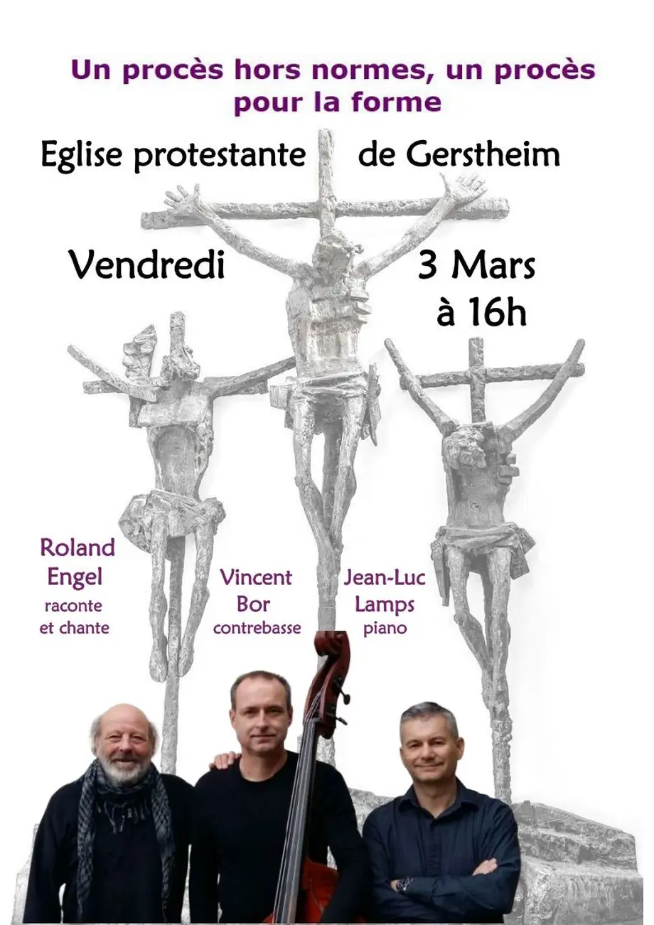 Roland Engel raconte et chante, accompagné au piano par Jean-Luc Lamps et à la contrebasse par Vincent Bor.