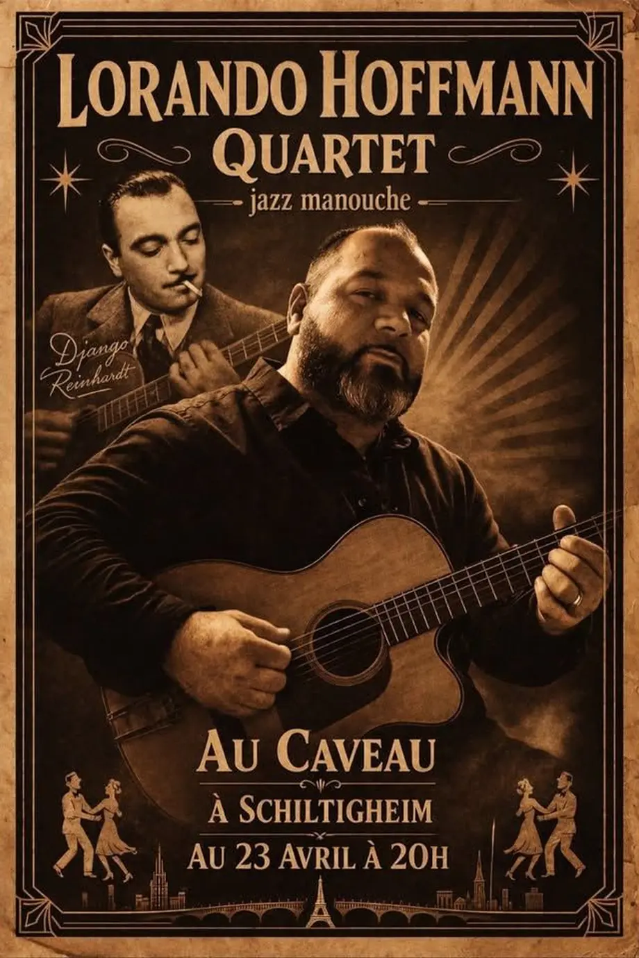 Au caveau de Schiltigheim avec le groupe Lorando Hoffmann quartet, accompagné de Lovino Hoffmann (piano). Geraldo Hoffmann (guitares rythmique). Arnaud Bodo ( contrebasse).