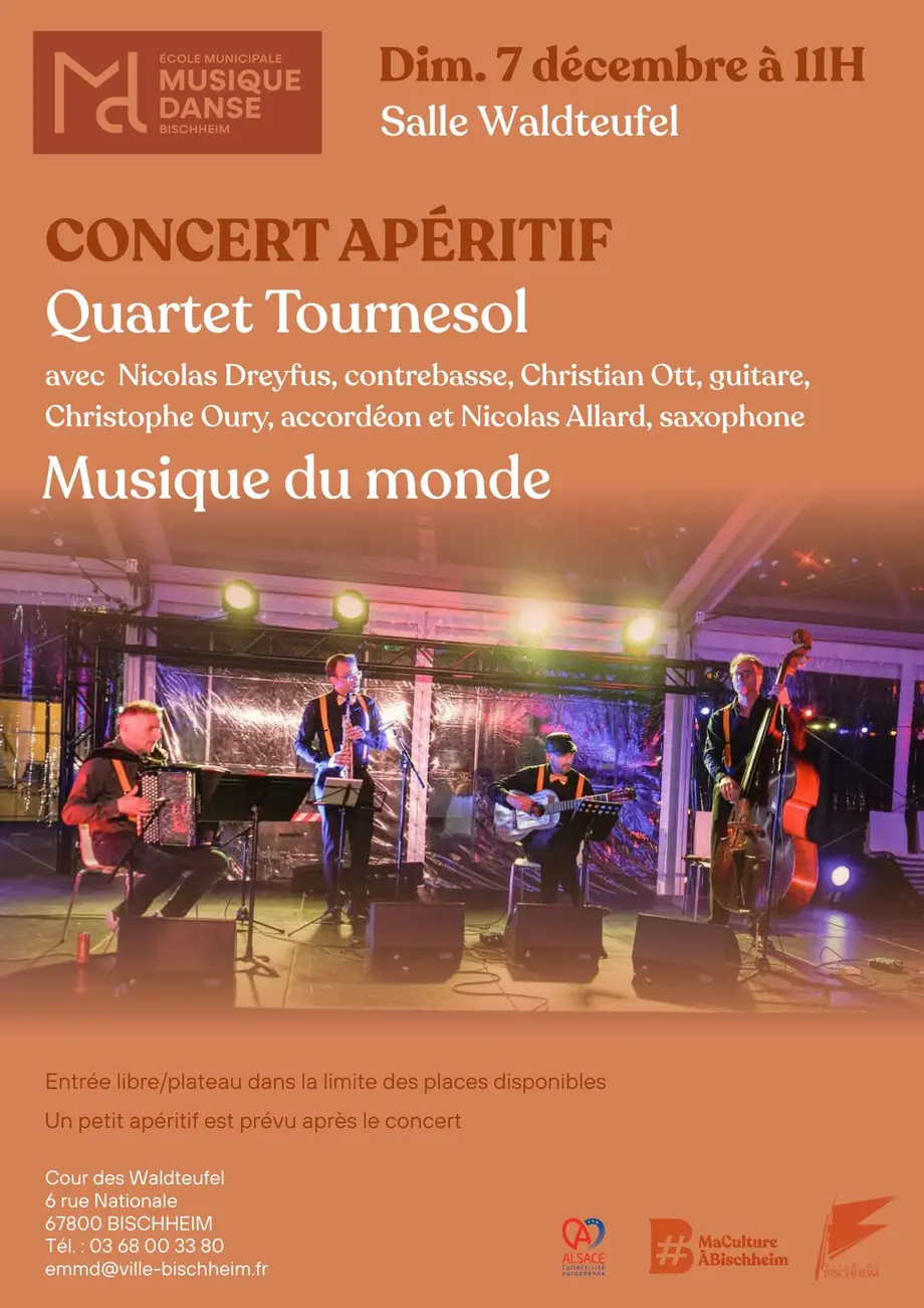 Revisitant les musiques du monde, le groupe s’affranchit des barrières stylistiques et sublime la musique dans l’improvisation et l’interprétation des pièces de maitres. Les compositions sont variées, tantôt poétiques, tantôt trépidantes. Une bossa-nova langoureuse évoluant en tango argentin, un récital de guitare qui s’enflamme et devient un flamenco exalté sont autant de surprises que réserve le quatuorTourneSol.