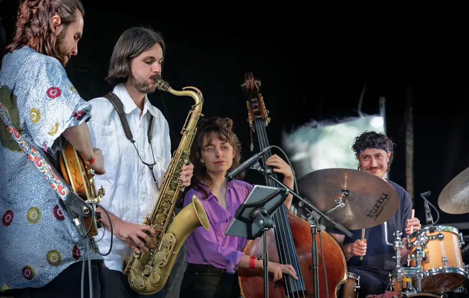 Quatre musicien·nes vous embarquent pour un voyage vers les quatre points cardinaux d’un jazz métissé. Entre guitare psychédélique, rythmiques chaloupées et vibrantes envolées du saxophone, la formation de Leo Geller convoque un melting pot d’influences : John Coltrane, Kurt Rosenwinkel, Fela Kuti ou encore Radiohead. Chaque note est jouée avec le cœur et les tripes.