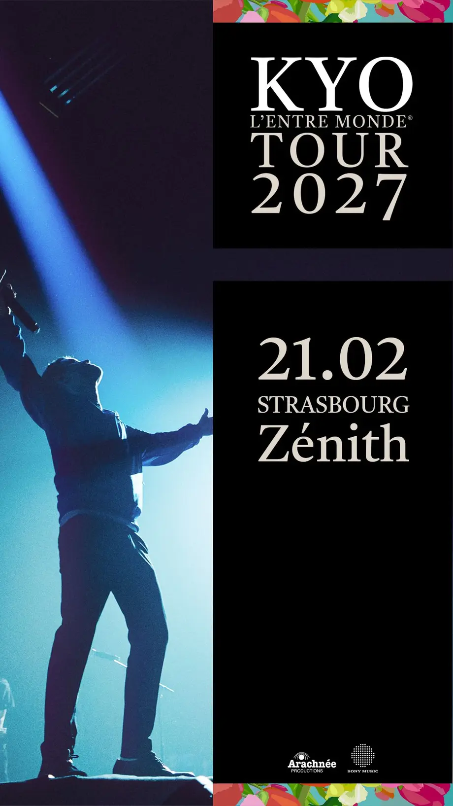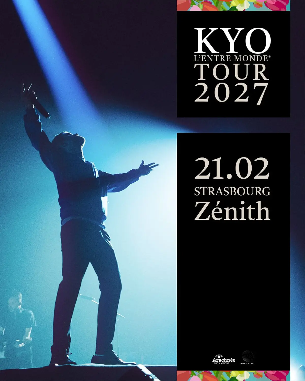 Le groupe français Kyo fait son grand retour sur scène avec "L'Entre Monde", un concert événement prévu le dimanche 21 février 2027 à 18h au Zénith de Strasbourg. Après une tournée anniversaire ayant réuni plus de 500 000 spectateurs, le quatuor français présente son show le plus ambitieux à ce jour. Cette date unique à Strasbourg s'annonce comme l'un des rendez-vous musicaux majeurs de l'année 2027 en Alsace. Les billets sont disponibles à partir de 45 €, ne tardez pas à réserver votre place pour cette soirée exceptionnelle.
