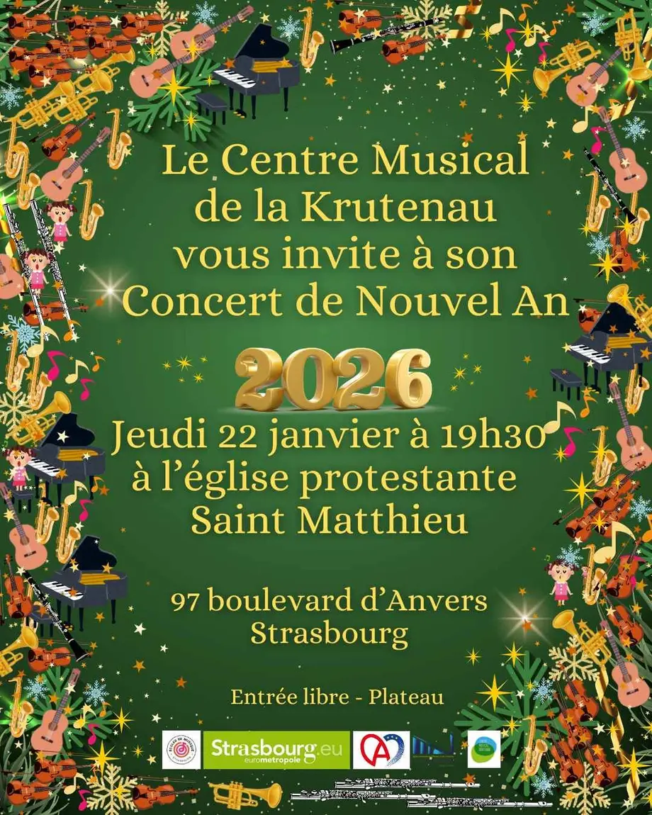 Le Centre Musical de la Krutenau, école de musique du réseau des 17 écoles de Strasbourg, vous invite à son concert de Nouvel An.