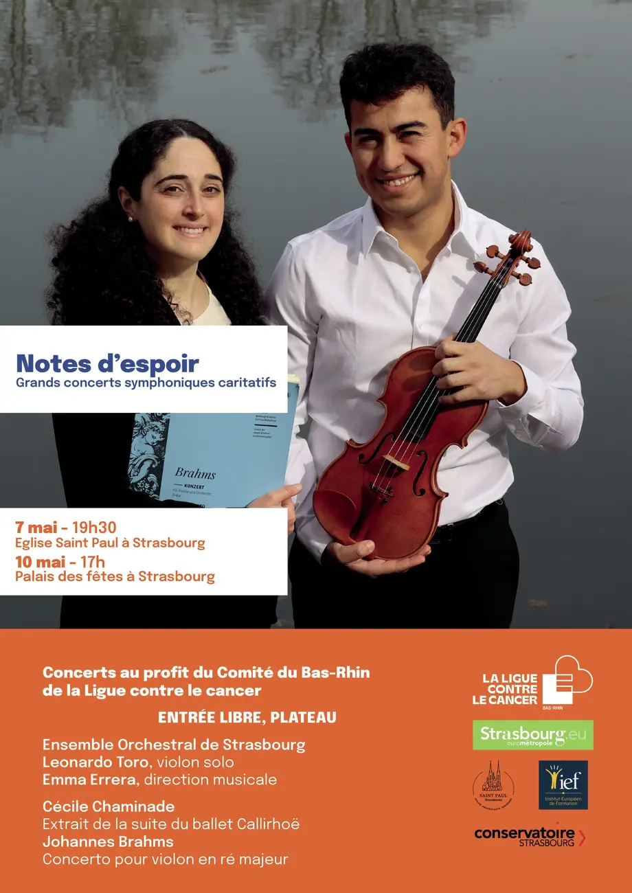 Organisé au profit de la lutte contre le cancer dans notre département, ce concert réunira une quarantaine de musiciens de l’Ensemble Orchestral de Strasbourg, avec Leonardo Toro au violon solo, sous la direction musicale d’Emma Errera .