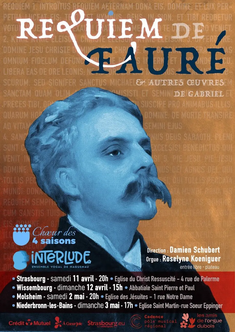 Au printemps 2026, l’Alsace vibrera au son de l’une des œuvres les plus lumineuses du répertoire français. L’ensemble vocal INTERLUDE de Haguenau et le Chœur des 4 saisons de Strasbourg Robertsau s’associent pour une tournée de plusieurs concerts consacrés au Requiem de Gabriel Fauré, une partition emblématique dont la douceur et la profondeur continuent de toucher les publics depuis plus d’un siècle.