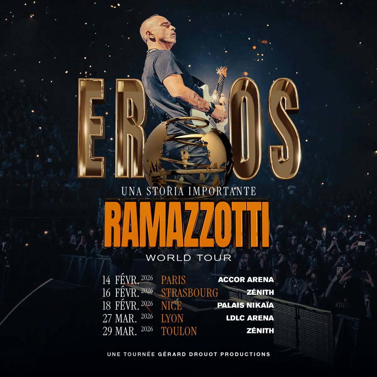 Una Storia Importante est le titre d'une tournée qui raconte le lien profond entre Eros Ramazzotti et son public. Un lien authentique et durable qui traverse le temps, les frontières et les générations. Une histoire faite de musique, d'émotions et de partage, qui continue de s'écrire avec la même force depuis toujours, alimentée par plus de 80 millions de disques vendus et plus de 9,3 milliards de streams dans le monde.