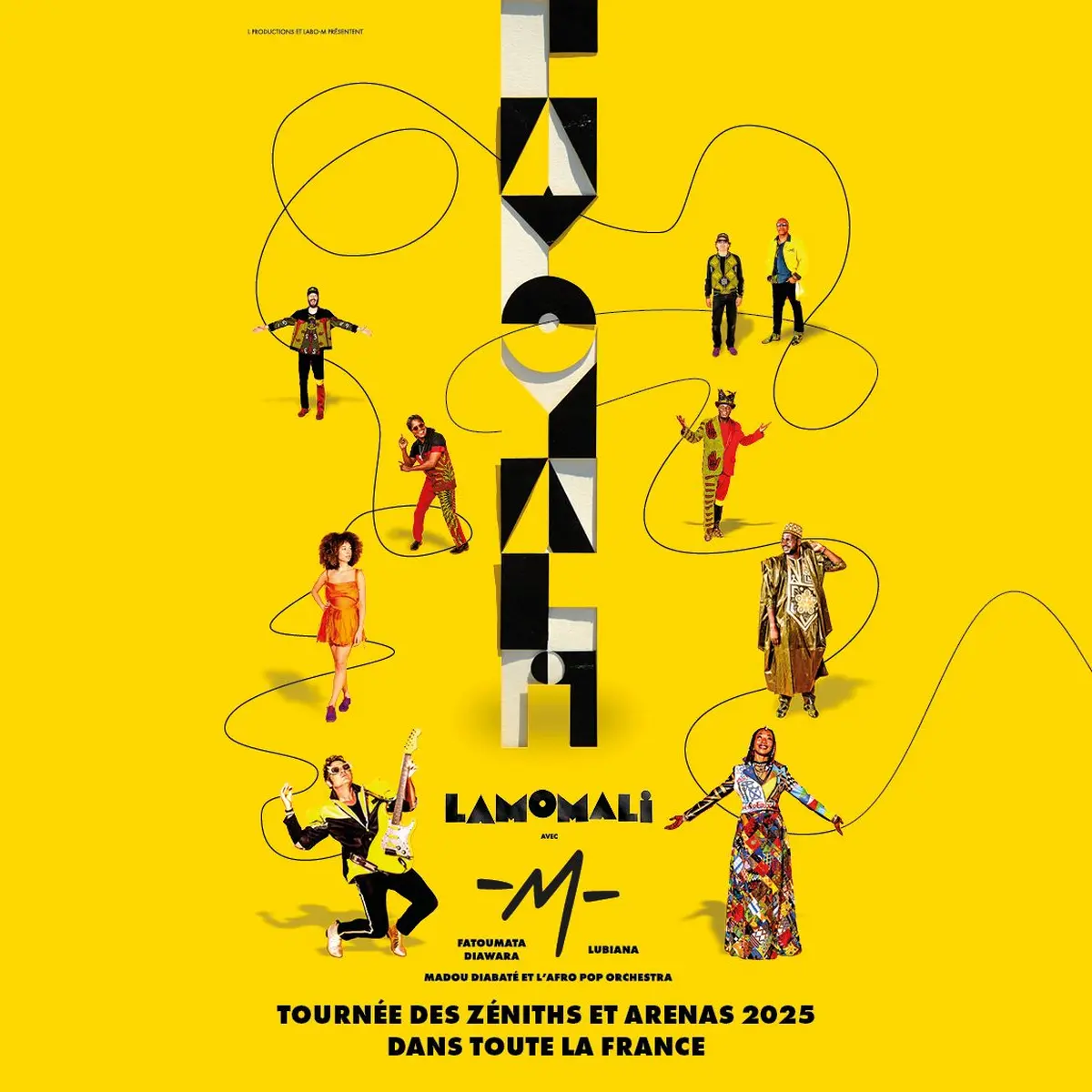 Lamomali n’est ni une suite, ni une répétition, mais une exploration profonde des racines qui l’ont fait naître. Cette nouvelle tournée est une invitation à plonger dans des cultures qui se croisent et se répondent, et à ressentir la puissance de la musique au travers des instruments traditionnels, de voix exceptionnelles, et des jeux d’artistes venus de tous les horizons, le tout porté par un -M- qui ne cesse jamais de se réinventer.