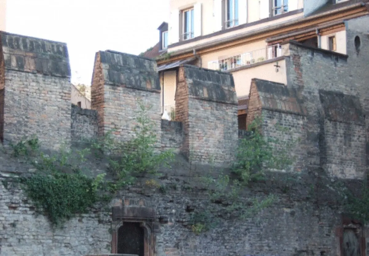 À peine plus loin, en direction de la place des Orphelins, l'oeil pourra se poser sur une partie de l'enceinte médiévale de la ville, qui a subsisté jusqu'à nos jours, et ainsi concevoir l'étendue du Strasbourg de l'époque.